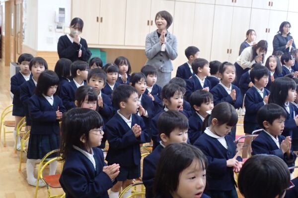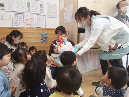 年少さん・年中さんの10月生まれのお誕生会を10月31日(金)に、年長さんの10月生まれのお誕生会と11月生まれのお誕生会を本日行いました。 ステージに上るとドキドキ💓した様子でしたが、園長先生からお誕生カードのプレゼン…