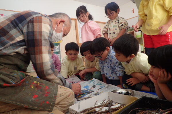 本日、年少さんは馬場先生を講師にお招きして、絵画教室を行いました。 テーマは「スクラッチから〇〇が・・・」 始まる前にカラスのカー君が鳴いたら体操選手お座りだよというお約束をして絵画教室が始まりました😊 ま…