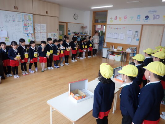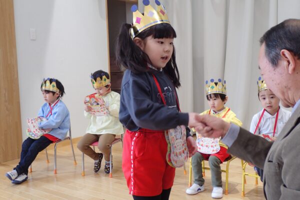 今日は、1月生まれのお友達の誕生会が行われました!最初に、寒い冬にぴったりな「にくまんあんまん」の手遊びをして、心も体もぽかぽかあったまりました! 次に、1月生まれのお友達の名前を呼ぶと、元気にお返事をして…